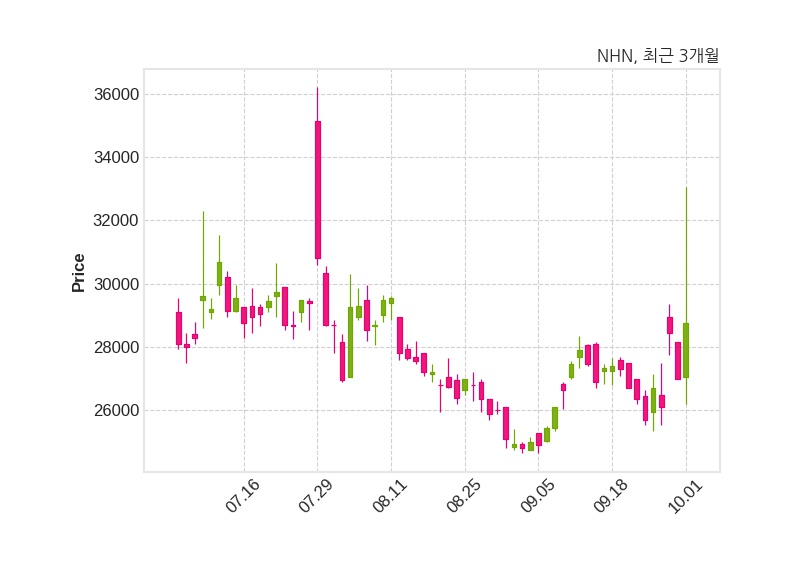 한편, NHN은 장 마감 이후 해당 기업공시를 발표했으며 오늘 종가가 28,750원, 거래량은 1,649,896주로, 직전 거래일 대비 1,750원(+6.48%) 상승했다.
