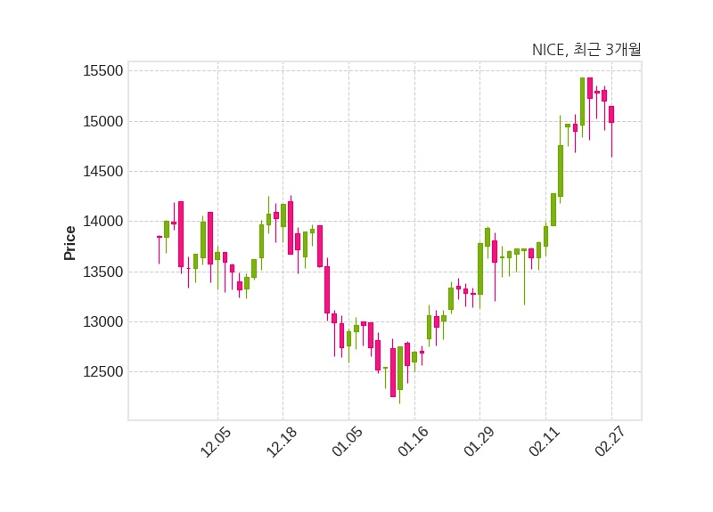 한편, NICE은 장 마감 이후 해당 기업공시를 발표했으며 오늘 종가가 14,990원, 거래량은 69,591주로, 직전 거래일 대비 210원(-1.38%) 하락했다.