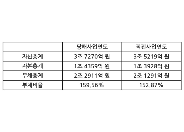 또한, 이번사업연도의 자산총계는 3조 7270억 원으로 직전사업연도 대비 5.83% 증가한 한편, 부채총계는 2조 2911억 원으로 7.61% 증가, 자본총계는 1조 4359억 원으로 3.1% 증가했다.