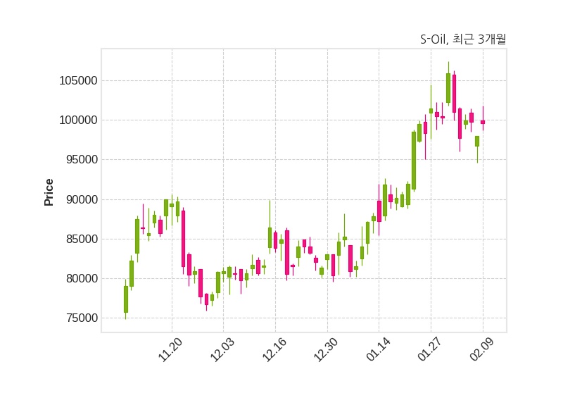 한편, S-Oil은 장 마감 이후 해당 기업공시를 발표했으며 오늘 종가가 99,600원, 거래량은 219,326주로, 직전 거래일 대비 1,600원(+1.63%) 상승했다.