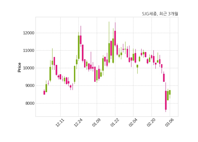 한편, SJG세종은 장 마감 이후 해당 기업공시를 발표했으며 오늘 종가가 8,740원, 거래량은 223,036주로, 직전 거래일 대비 60원(+0.69%) 상승했다.