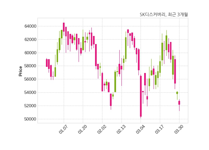 한편, SK디스커버리는 장 마감 이후 해당 기업공시를 발표했으며 오늘 종가가 52,200원, 거래량은 18,181주로, 직전 거래일 대비 1,900원(-3.51%) 하락했다.