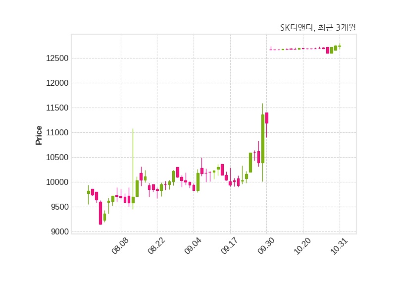 한편, SK디앤디는 장 마감 이후 해당 기업공시를 발표했으며 오늘 종가가 12,750원, 거래량은 32,113주로, 직전 거래일 대비 변동이없다.