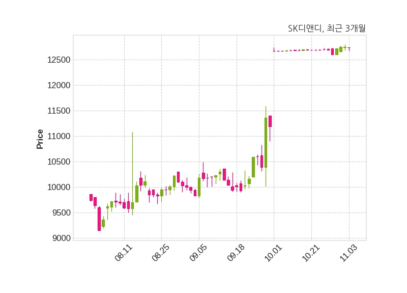 SK디앤디는 특별관계자 SK디스커버리의 지분율이 78.48%에서 63.51%로 변동했다고 03일 공시했다. 한편, SK디앤디는 장 마감 이후 해당 기업공시를 발표했으며 오늘 종가가 12,740원, 거래량은 171,773주로, 직전 거래일 대비 10원(-0.08%) 하락했다.