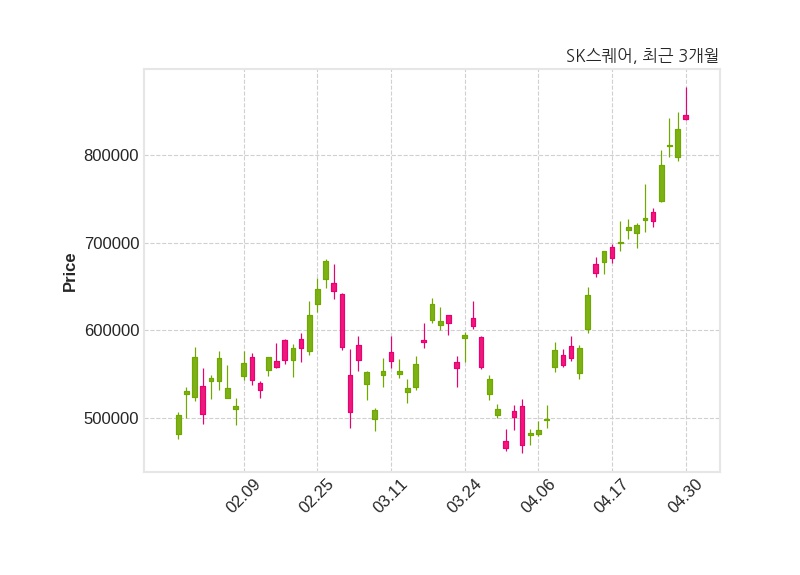 한편, SK스퀘어는 장 마감 이후 해당 기업공시를 발표했으며 오늘 종가가 841,000원, 거래량은 569,005주로, 직전 거래일 대비 11,000원(+1.33%) 상승했다.