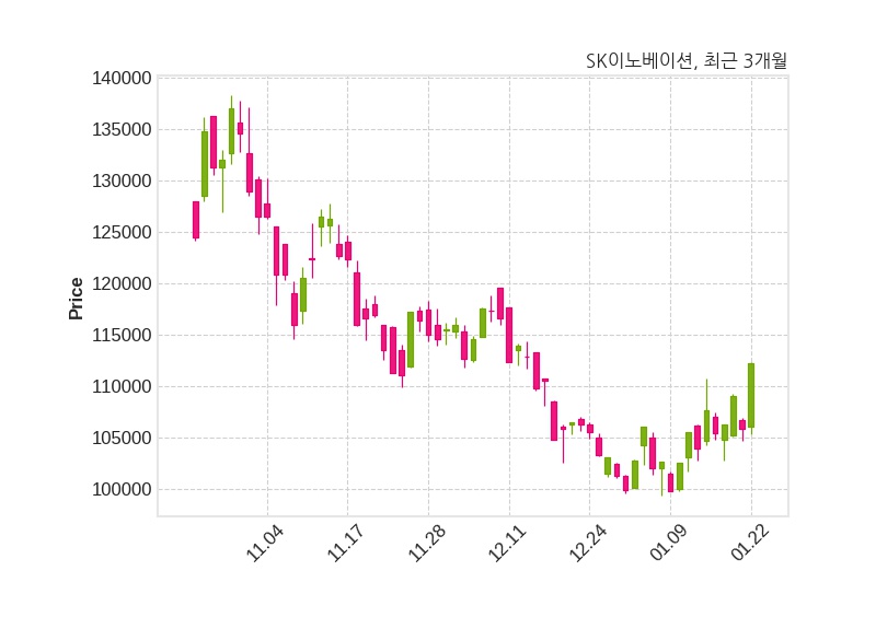 한편, SK이노베이션은 장 마감 이후 해당 기업공시를 발표했으며 오늘 종가가 112,200원, 거래량은 802,247주로, 직전 거래일 대비 6,400원(+6.05%) 상승했다.
