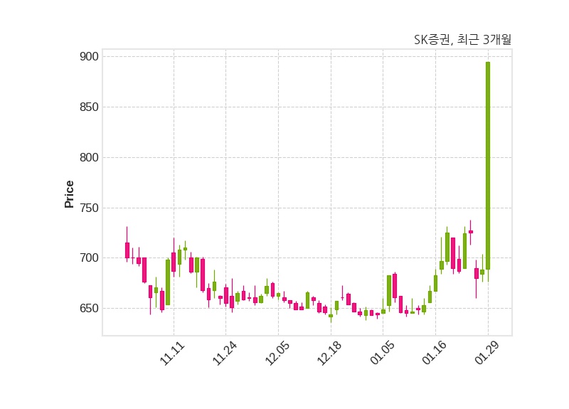 한편, SK증권은 장 마감 이후 해당 기업공시를 발표했으며 오늘 종가가 894원, 거래량은 75,140,083주로, 직전 거래일 대비 206원(+29.94%) 상승했다.