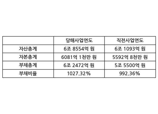 또한, 이번사업연도의 자산총계는 6조 8554억 원으로 직전사업연도 대비 12.21% 증가한 한편, 부채총계는 6조 2472억 원으로 12.56% 증가, 자본총계는 6081억 1천만 원으로 8.73% 증가했다.