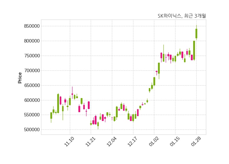 한편, SK하이닉스는 장 마감 이후 해당 기업공시를 발표했으며 오늘 종가가 841,000원, 거래량은 6,091,399주로, 직전 거래일 대비 41,000원(+5.12%) 상승했다.