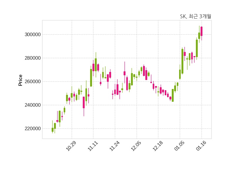 한편, SK은 장 마감 이후 해당 기업공시를 발표했으며 오늘 종가가 299,000원, 거래량은 195,357주로, 직전 거래일 대비 2,500원(-0.83%) 하락했다.