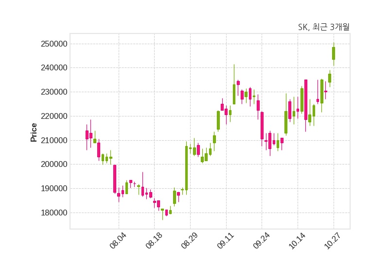 SK은 특별관계자 최태원의 지분율이 25.48%에서 25.5%로 변동했다고 27일 공시했다. 한편, SK은 장 마감 이후 해당 기업공시를 발표했으며 오늘 종가가 248,500원, 거래량은 367,939주로, 직전 거래일 대비 11,000원(+4.63%) 상승했다.