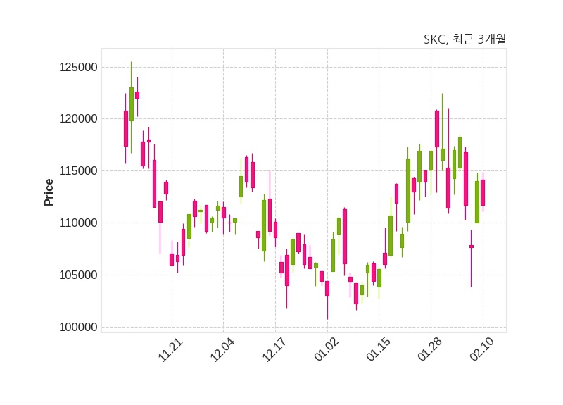한편, SKC은 장 마감 이후 해당 기업공시를 발표했으며 오늘 종가가 111,700원, 거래량은 210,103주로, 직전 거래일 대비 2,300원(-2.02%) 하락했다.