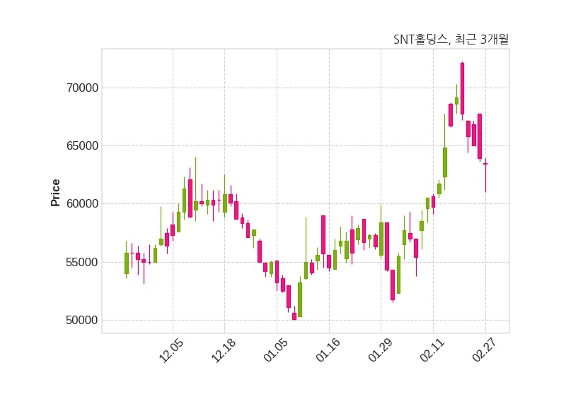 SNT홀딩스는 특별관계자 최평규의 지분율이 64.1%에서 64.47%로 변동했다고 27일 공시했다. 한편, SNT홀딩스의 14시 39분 현재주가는 63,400원으로 직전 거래일 대비 500원(-0.78%) 하락이며, 거래량은 23,628주이다.