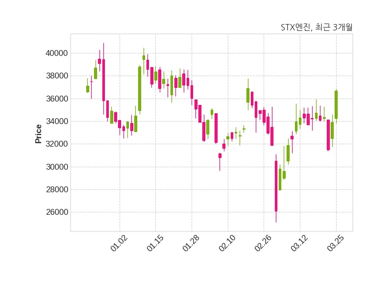 한편, STX엔진의 11시 07분 현재주가는 36,700원으로 직전 거래일 대비 2,800원(+8.26%) 상승이며, 거래량은 205,486주이다.