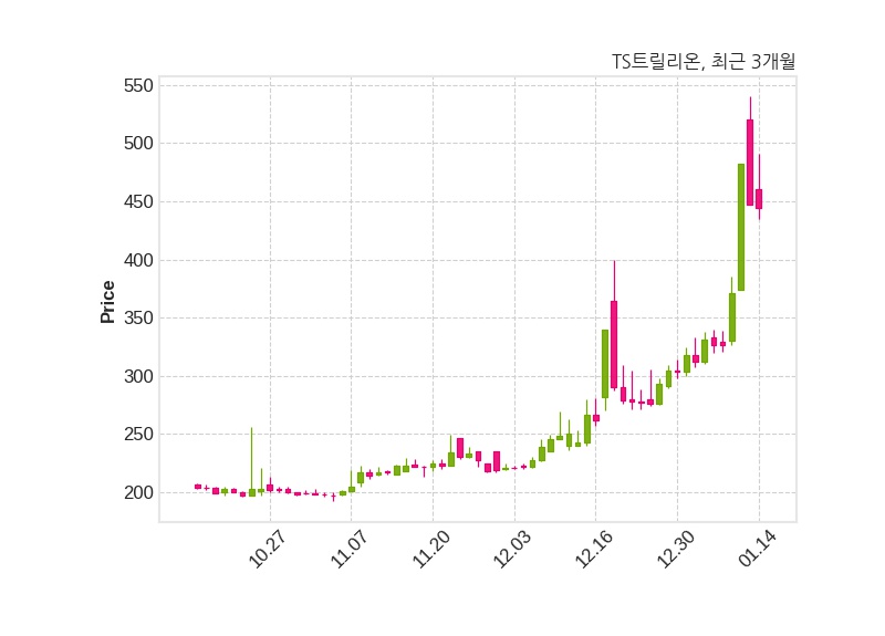TS트릴리온은 특별관계자 디에스조합의 지분율이 0.0%에서 20.4%로 변동했다고 14일 공시했다. 한편, TS트릴리온의 15시 16분 현재주가는 444원으로 직전 거래일 대비 3원(-0.67%) 하락이며, 거래량은 11,711,438주이다.