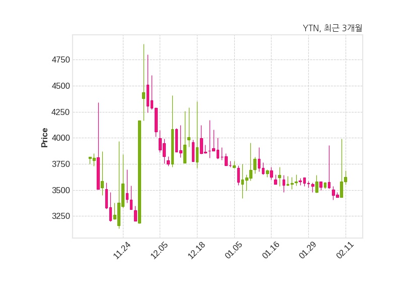 한편, YTN은 장 마감 이후 해당 기업공시를 발표했으며 오늘 종가가 3,625원, 거래량은 544,385주로, 직전 거래일 대비 45원(+1.26%) 상승했다.